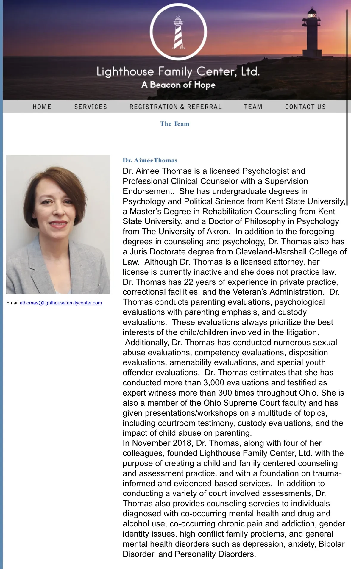 My Horrific Experience with Aimee Thomas of Lighthouse Family Center, LTD Summit County Ohio Court Appointed Psychologist - A Negligent And Incompetent Practice Robbing Others Of Justice and Hope While Destroying Lives