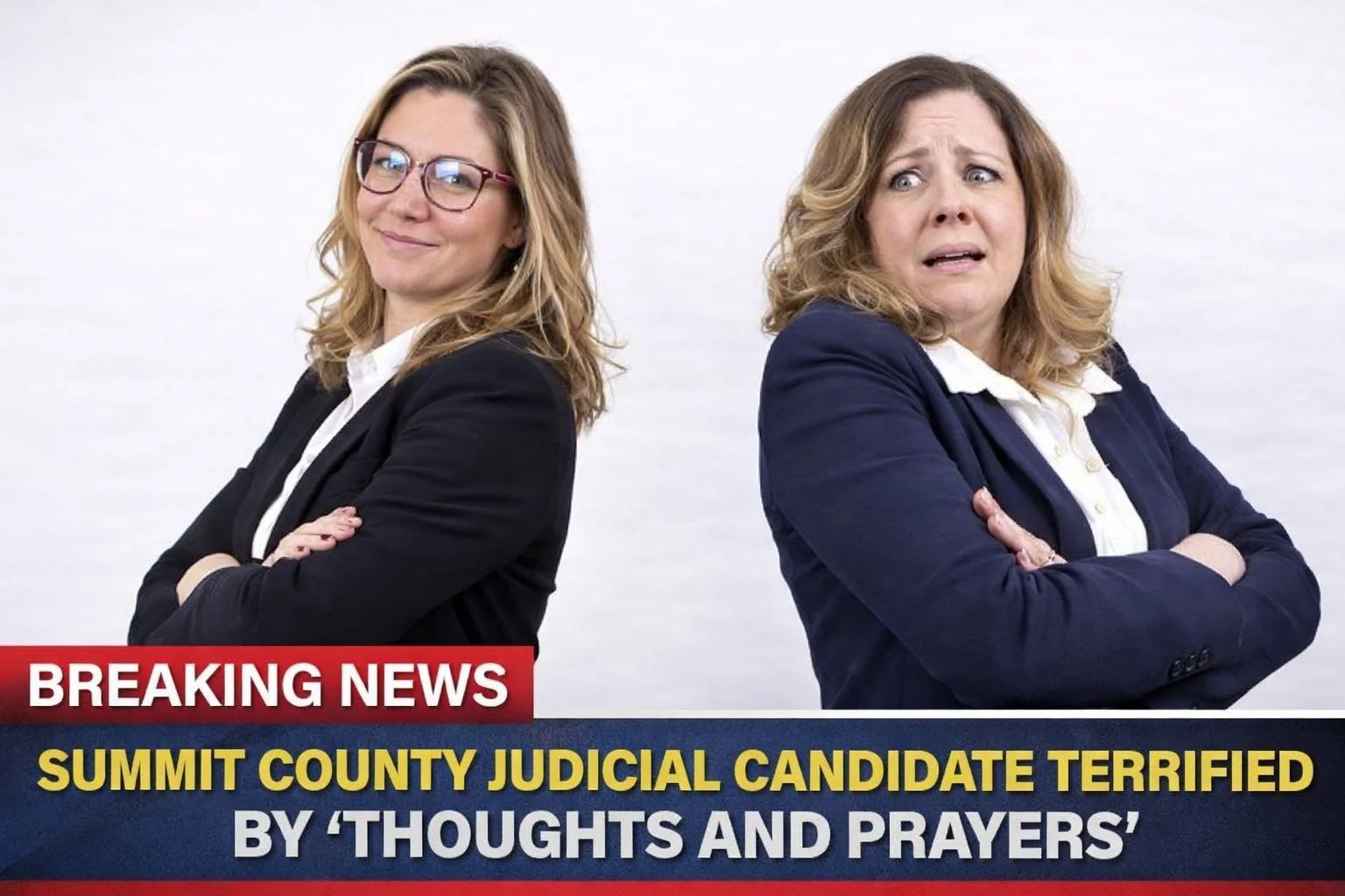 Summit County, Ohio — In what experts are calling a groundbreaking expansion of legal standards, a judicial candidate and partner at Roderick Linton Belfance, LLP in Akron Ohio has successfully demonstrated that “thoughts and prayers” may now qualify as a threat.